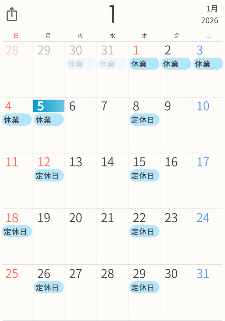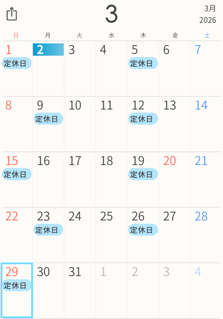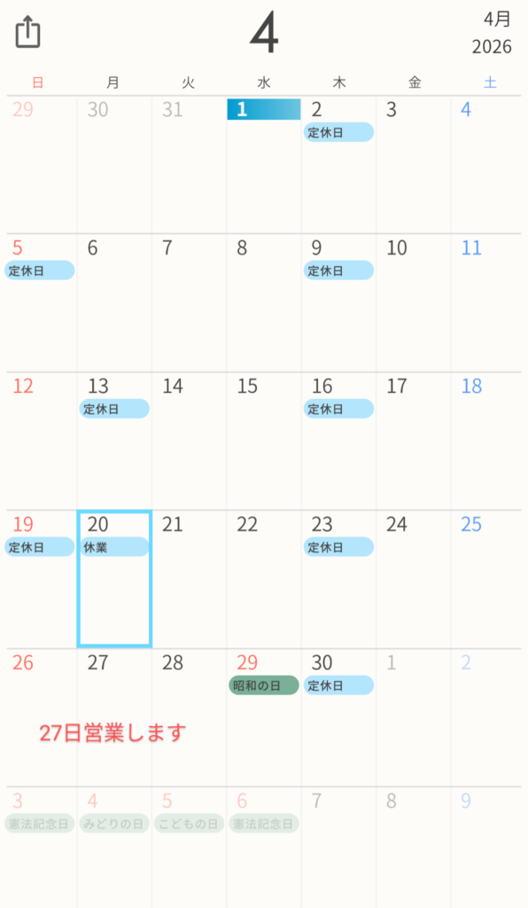 (定休日) 第1・第3・第5日曜 第2・第4月曜 毎週木曜